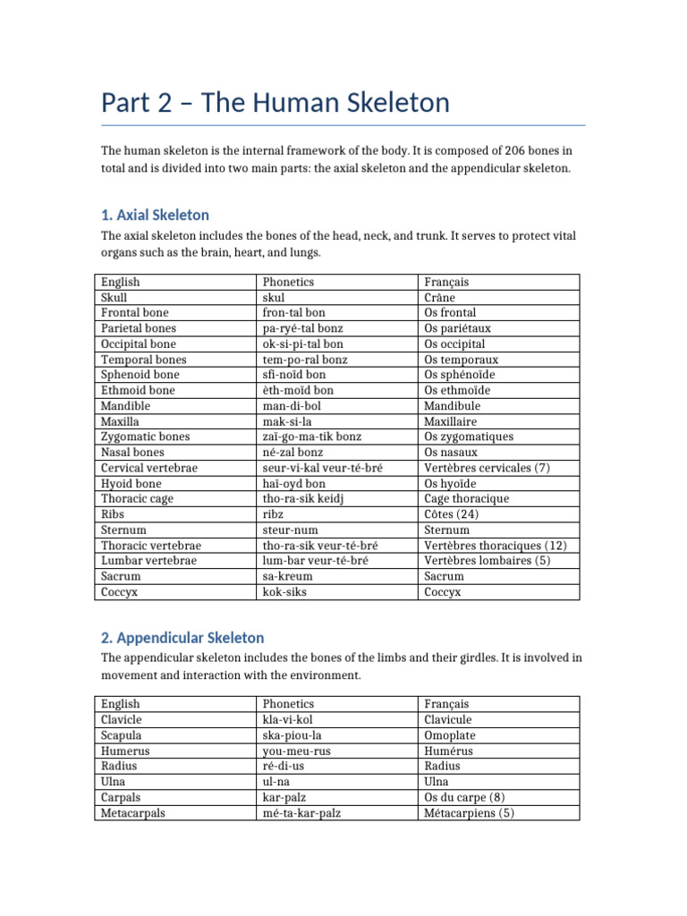 Part 2 – The Human Skeleton