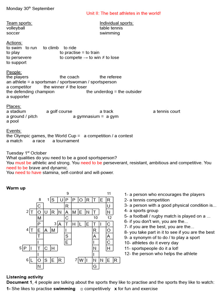 2- Choose 1 to 5 athletes you know and 5 adjectives from the list. Make 5 sentences about them.