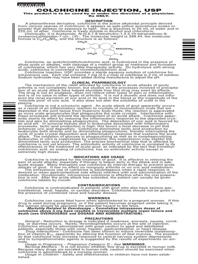 Colchicine Injection, USP, provides a sterile aqueous solution of colchicine for