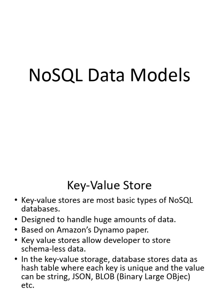 : BigTable, Hbase, Cassandra, SimpleDB etc.