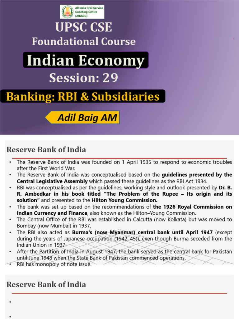 Banking: RBI & Subsidiaries