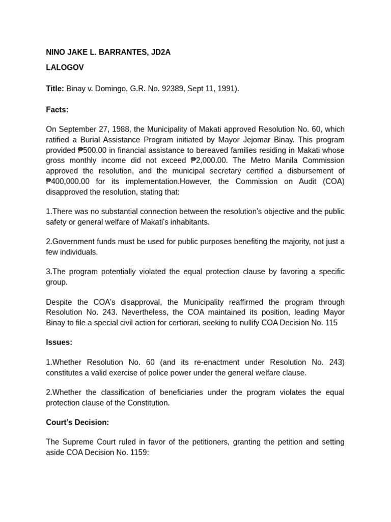 Title: Binay v. Domingo, G.R. No. 92389, Sept 11, 1991).