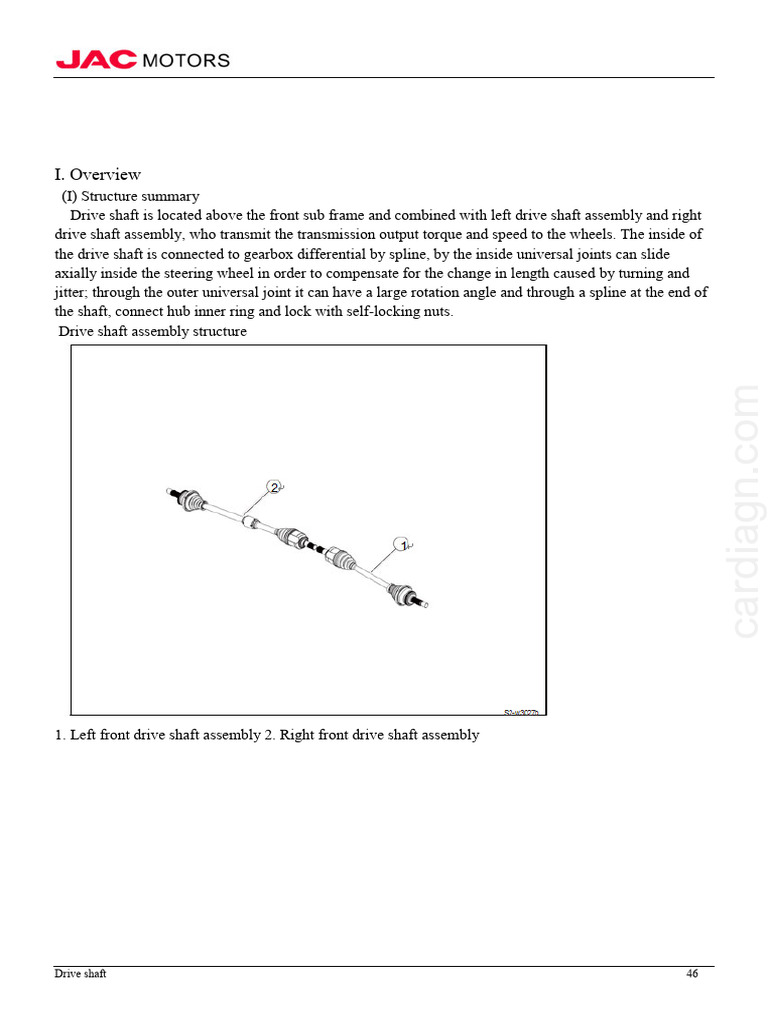 drive shaft assembly, who transmit the transmission output torque and speed to the wheels. The inside of
