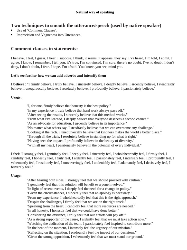 I believe : "I firmly believe, I truly believe, I sincerely believe, I deeply believe, I ardently believe, I steadfastly
