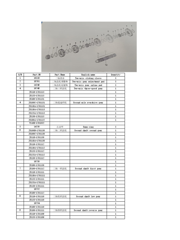 12 JS180-1701105 二轴 Second shaft 1