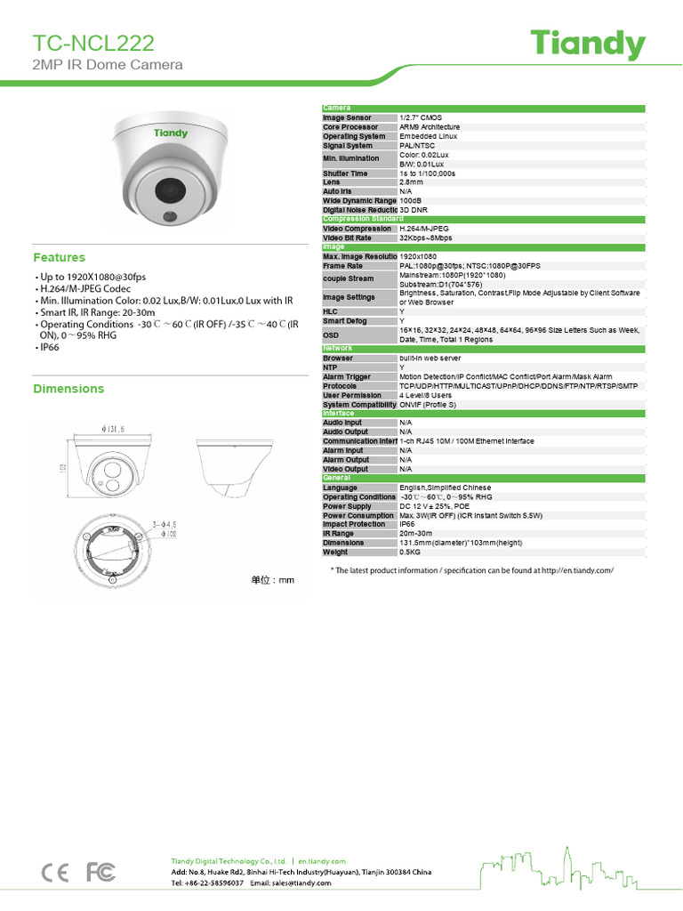 * The latest product information / specification can be found at http://en.tiandy.com/
