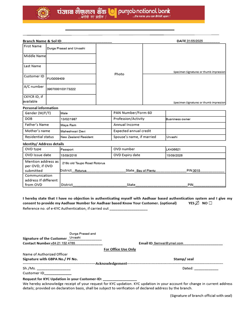 Residential status New Zealand Resident Spouse’s name, if married Urvashi