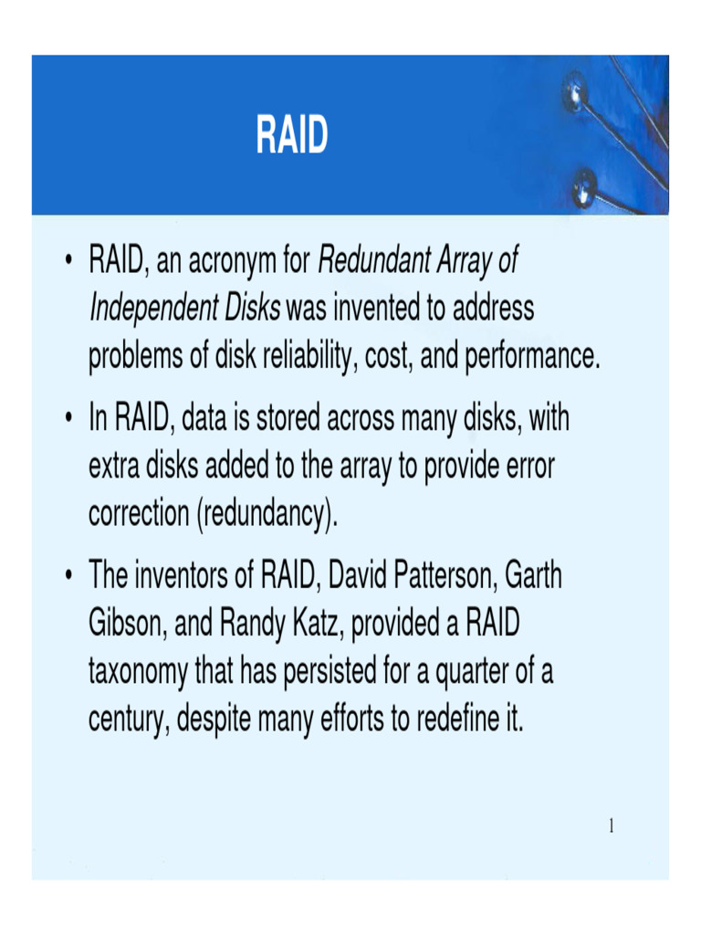 • RAID Level 4 is like adding parity disks to RAID 0.