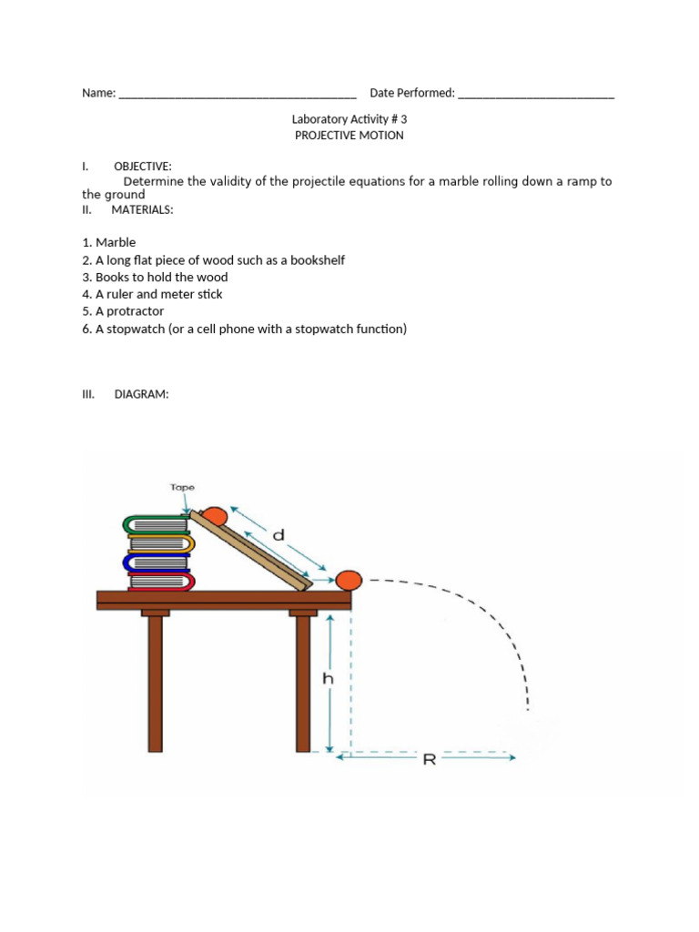 Determine the validity of the projectile equations for a marble rolling down a ramp to