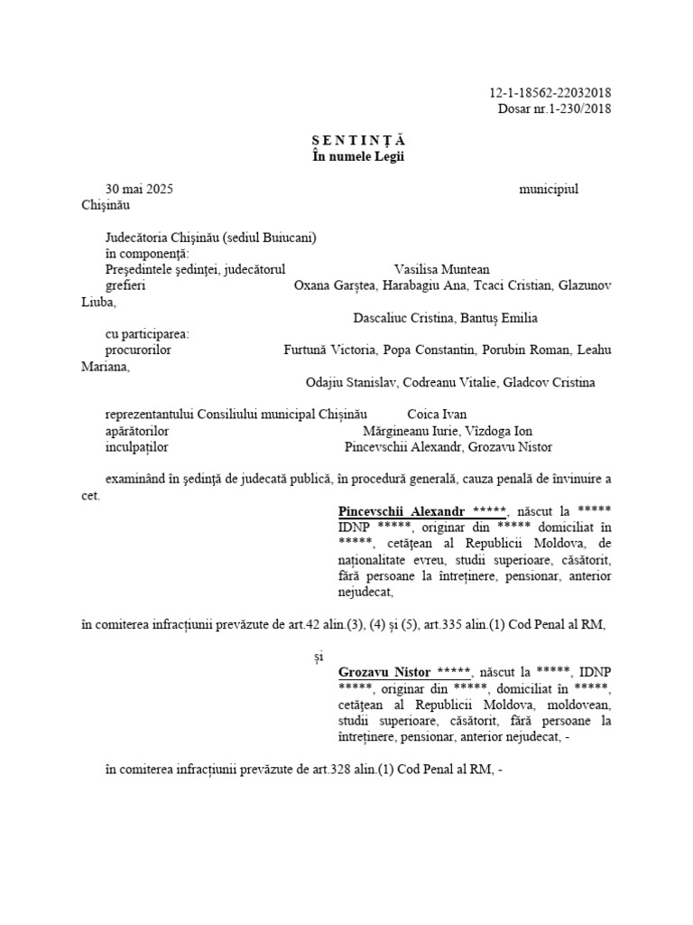 inculpaților Pincevschii Alexandr, Grozavu Nistor