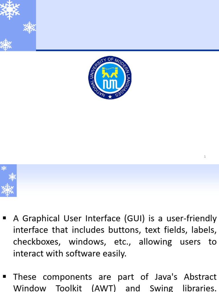 ▪ AWT (Abstract Window Toolkit) is Older, platform.
