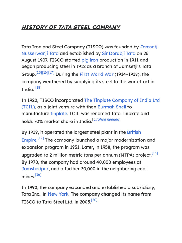HISTORY OF TATA STEEL COMPANY