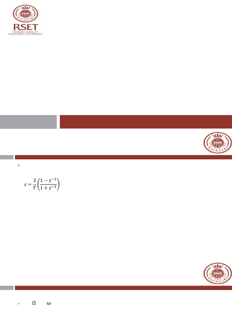 ➢ Bilinear transformation - Mapping of points from s-plane to the z- plane is given by
