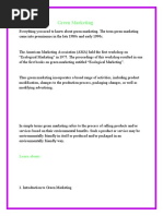 considering the accuracy of their behavior, their claims, or the effectiveness of their products. This lack of consideration of the true greenness of activities may result in firms making false or misleading green marketing claims. THREE KEYS TO SUCCESSFUL GREEN MARKETING Show potential customers that you follow green business practices and you could reap more green on your bottom line. Green Marketing isn't just a catchphrase; it's a marketing strategy that can help you get more customers and make more money. But only if you do it right. For green marketing to be effective, you have to do three things; be genuine, educate your customers, and give them the opportunity to participate. 1) BEING GENUINE means that a) that you are actually doing what you claim to be doing in your green marketing campaign and b) that the rest of your business policies are consistent with whatever you are doing that's environmentally friendly. Both these conditions have to be met for your business to establish the kind of environmental credentials that will allow a green marketing campaign to succeed. 2) EDUCATING YOUR CUSTOMERS isn't just a matter of letting people know you're doing whatever you're doing to protect the environment, but also a matter of letting them know why it matters. Otherwise, for a significant portion of your target market, it's a case of "So what?" and your green marketing campaign goes nowhere. 3) GIVING YOUR CUSTOMERS AN OPPORTUNITY TO PARTICIPATE means personalizing the benefits of your environmentally friendly actions, normally through letting the customer take part in positive environmental action.