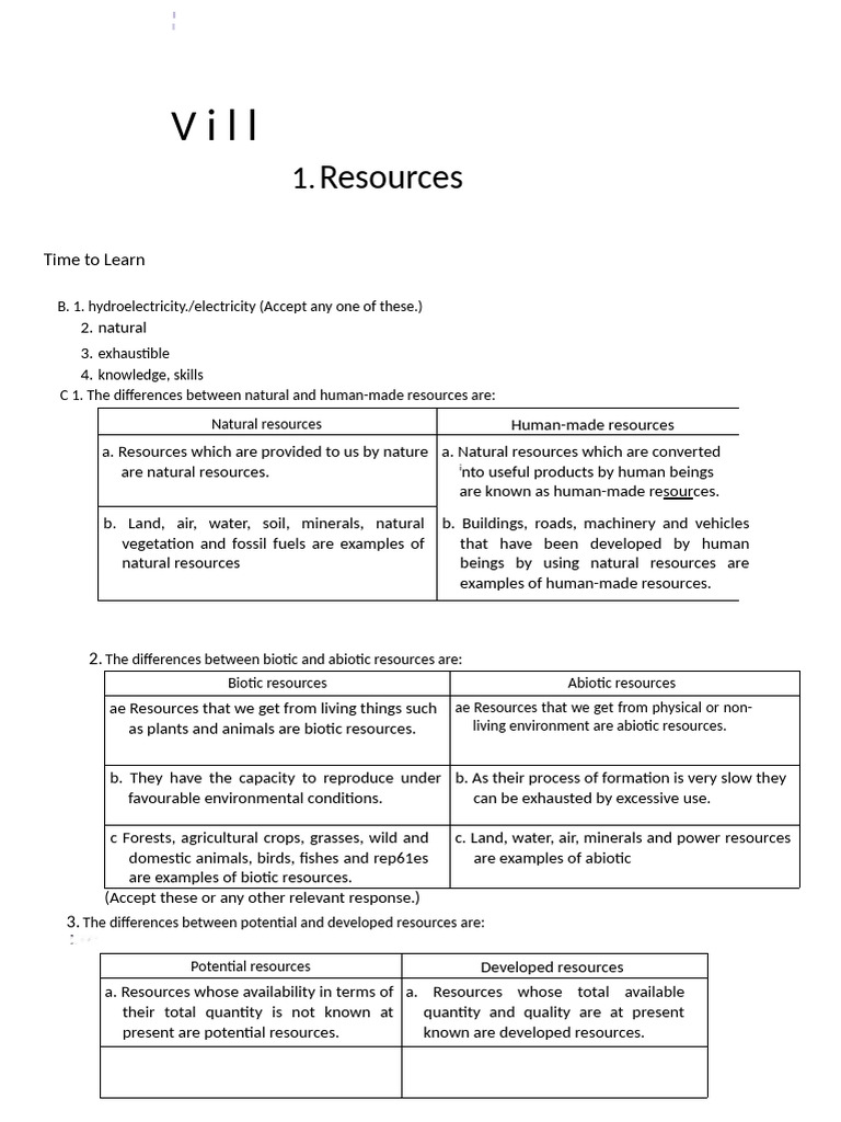 C 1. The differences between natural and human-made resources are: