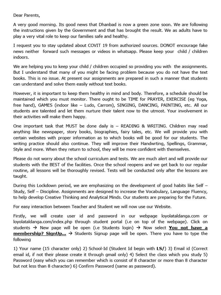 Dear Parents,