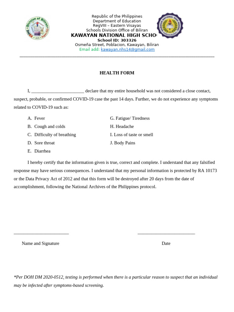 or the Data Privacy Act of 2012 and that this form will be destroyed after 20 days from the date of