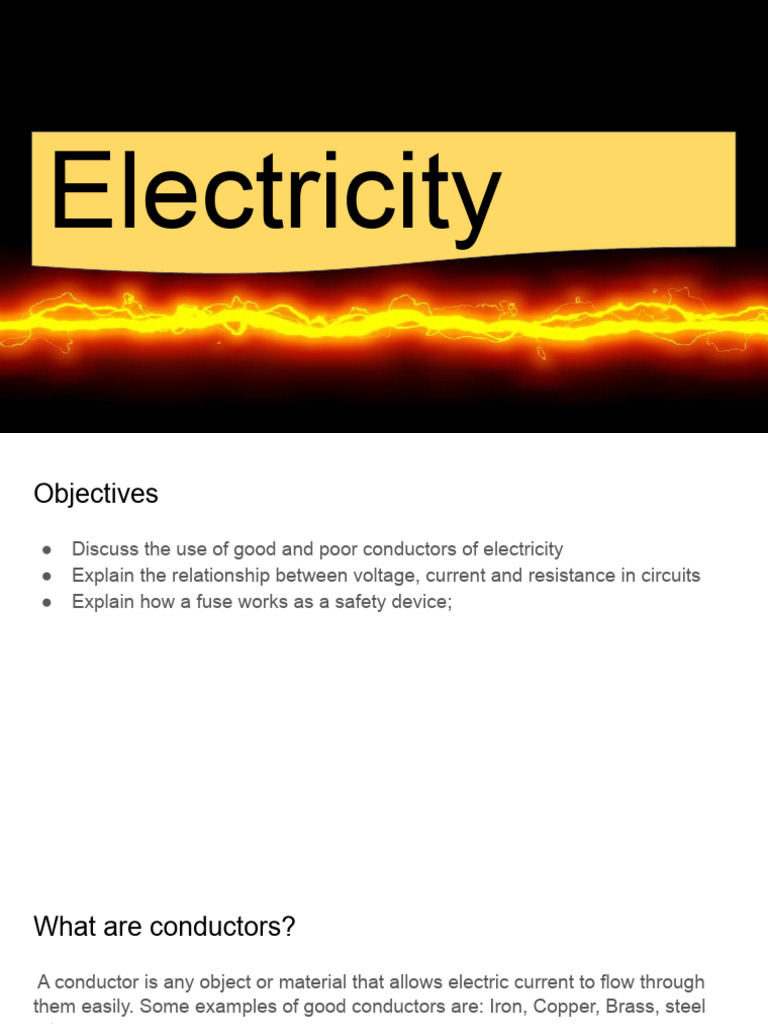 them easily. Some examples of good conductors are: Iron, Copper, Brass, steel