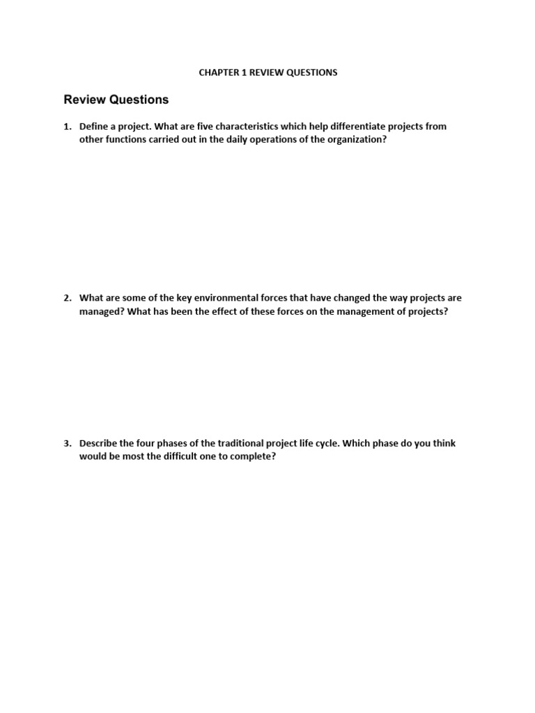 3. Describe the four phases of the traditional project life cycle. Which phase do you think