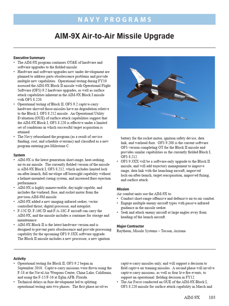 • AIM-9X is the latest generation short-range, heat-seeking, • OFS 9.3XX will be a software-only upgrade to the Block II