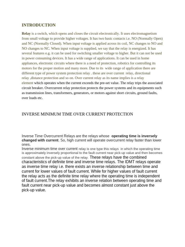 relay ,distance protection and so on. Over current relay as its name implies is a relay