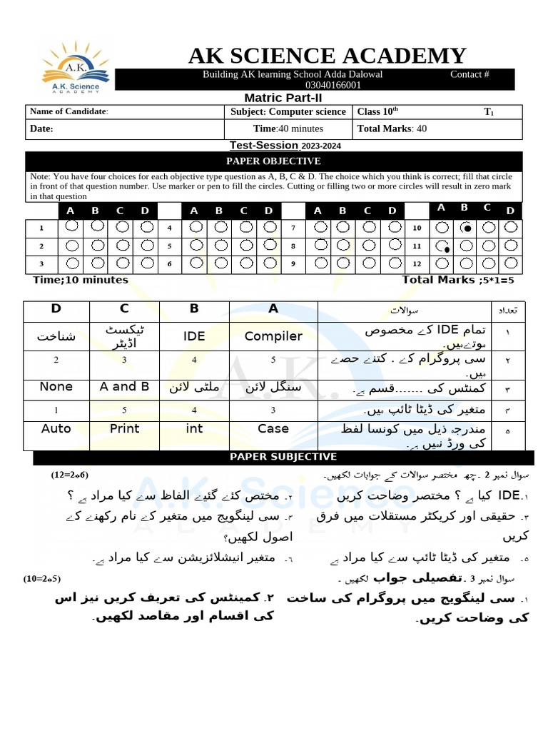 Auto Print int Case مندرجہ ذیل میں کونسا لفظ ۵