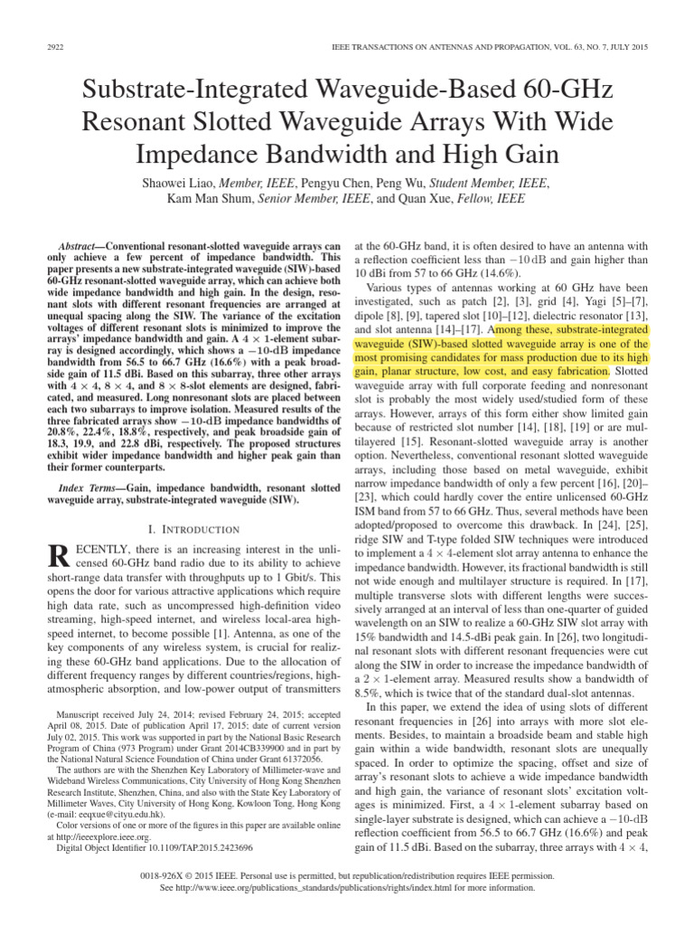 resonant slotted-waveguide antenna arrays based on the infinite wave- University of Hong Kong) as a Senior Engineer.