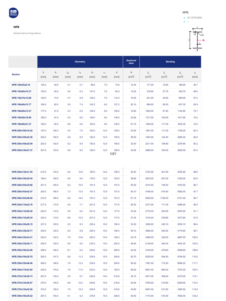 NPB 200x100x25.09 23.0 86.3 124.72 12.42 218.90 33.10 16.29 11.44 7.02 1498.02 7.39 49.09