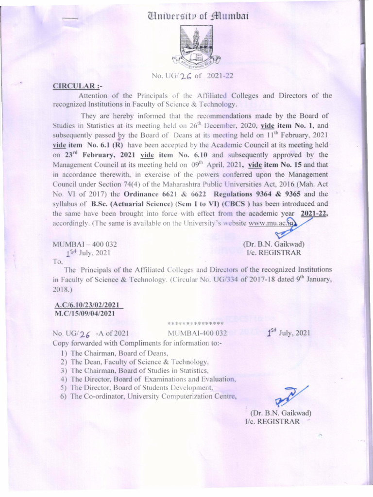No. UG/26 -A of2021 MUMBAI-400 032 l July, 2021