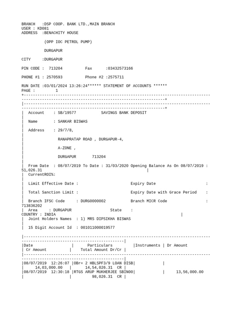 RUN DATE :03/01/2024 13:26:24****** STATEMENT OF ACCOUNTS ******