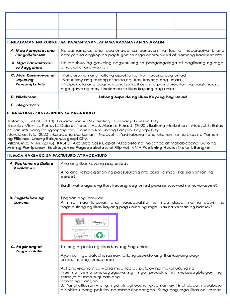 II. BATAYANG SANGGUNIAN SA PAGKATUTO