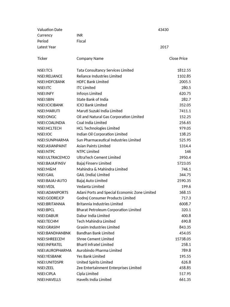 Ticker Company Name Close Price