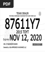 IT IS A FELONY TO FRAUDULENTLY ALTER THIS DOCUMENT (Transportation Code, Sec502.410)