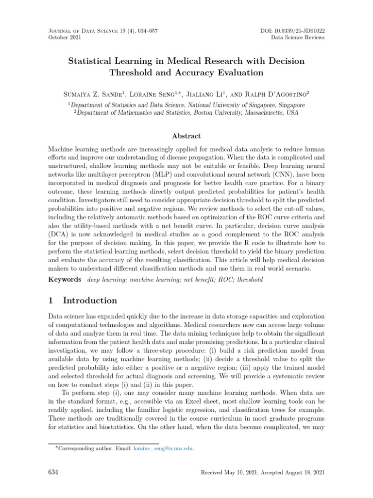 Keywords deep learning; machine learning; net benefit; ROC; threshold