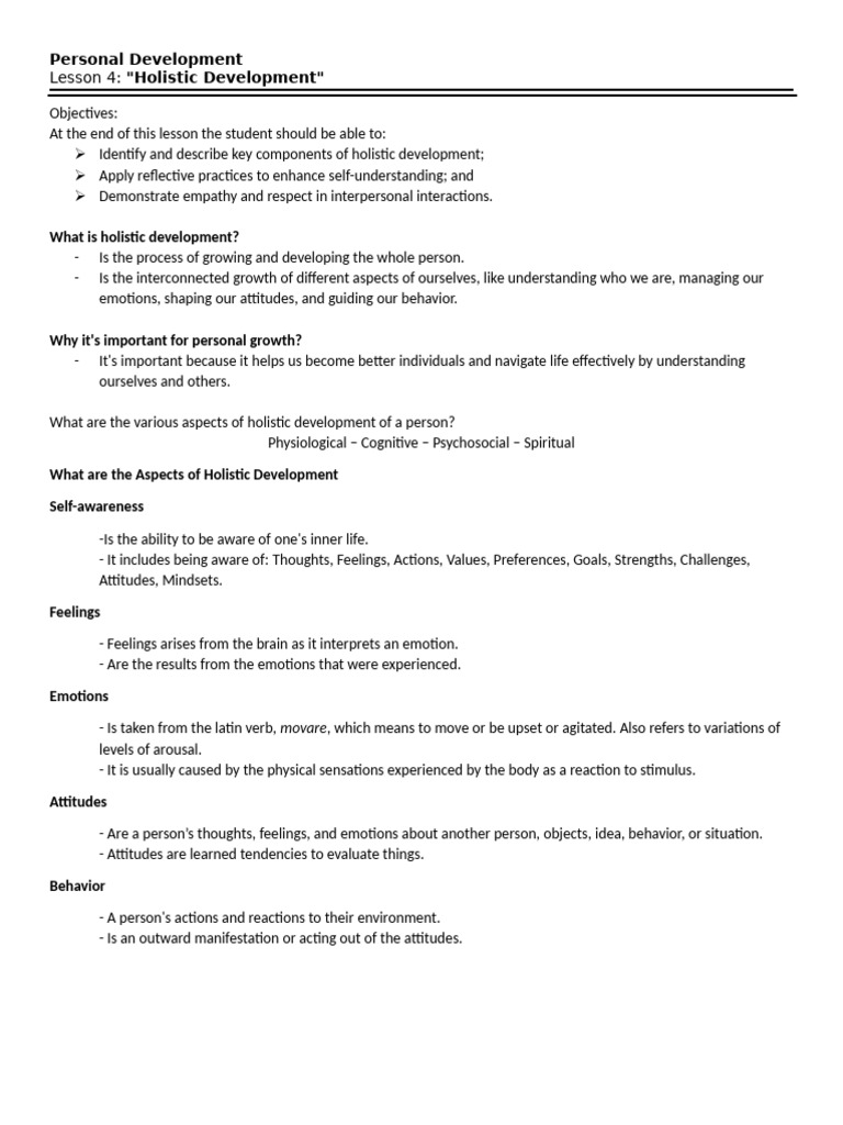 Lesson 4: "Holistic Development"