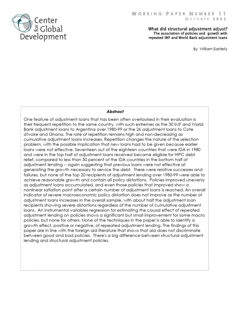 What Did Structural Adjustment Adjust?: Orking Aper Umber