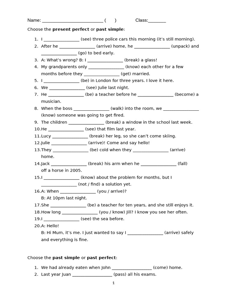Choose the past simple or past perfect: