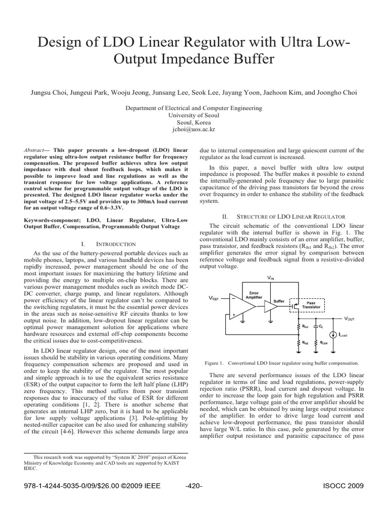 dropout regulator with buffer impedance attenuation,” IEEE J. Solid-