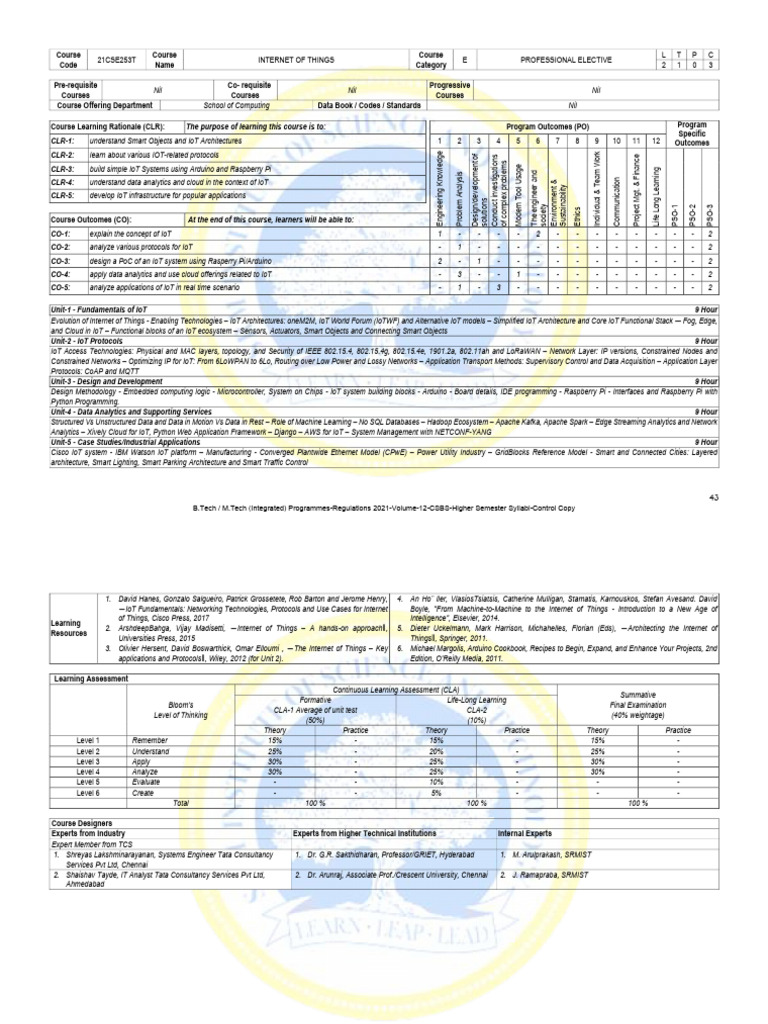 21CSE253T INTERNET OF THINGS E PROFESSIONAL ELECTIVE