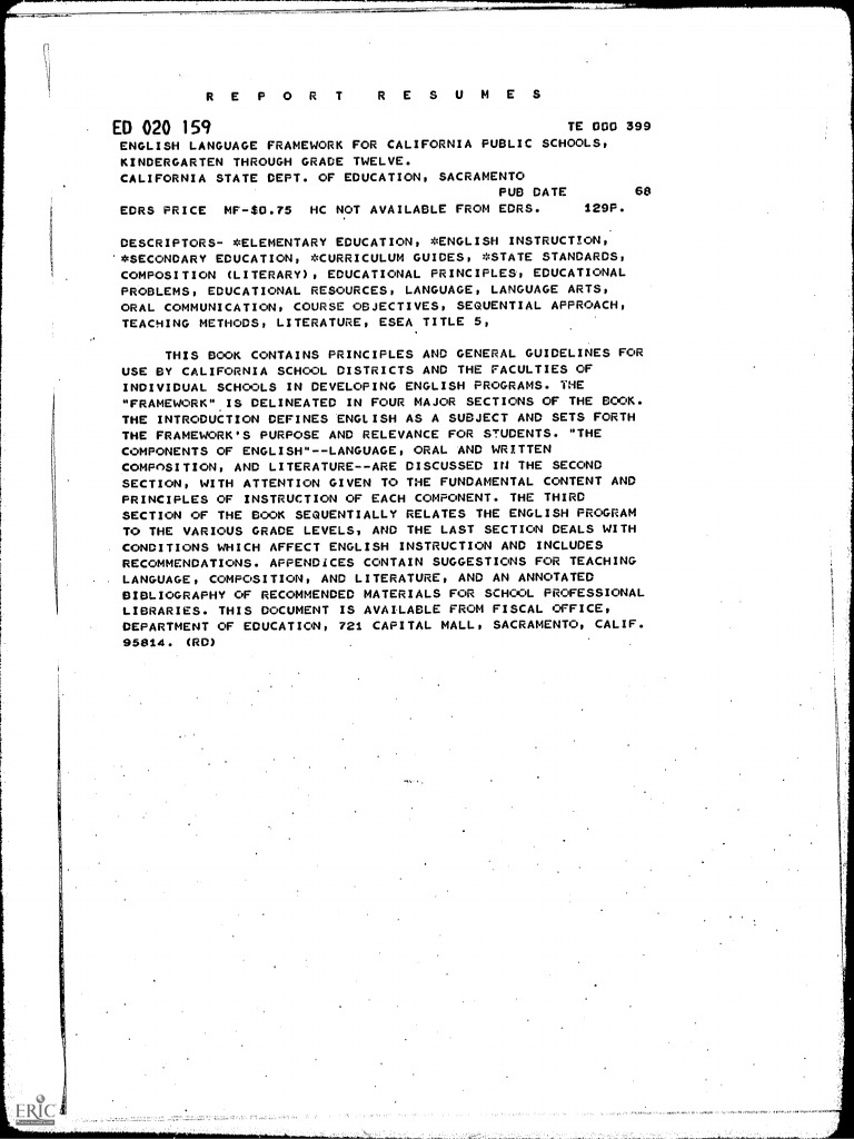 ENGLISH LANGUAGE FRAMEWORK FOR CALIFORNIA PUBLIC SCHOOLS,
