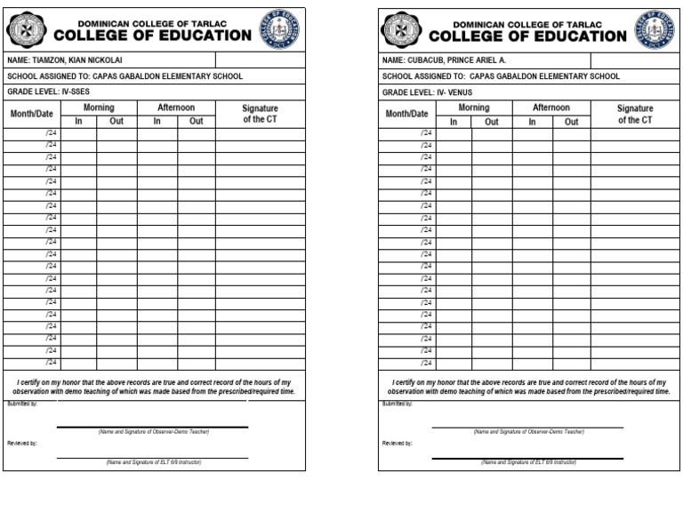 (Name and Signature of ELT 6/9 Instructor) (Name and Signature of ELT 6/9 Instructor)
