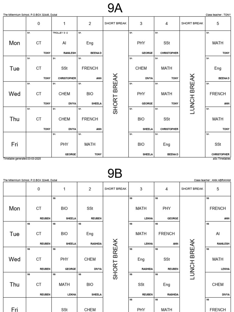 Timetable generated:03-03-2025 aSc Timetables
