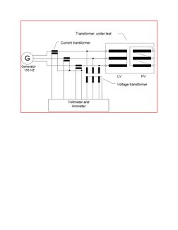 A basic measuring circuit for partial discharge test is shown in figure 2 , IEC Standards 60726. The low-voltage windings shall be supplied from an alternate 100 Hz voltage source. The voltage shape shall be as nearly as possible of the sine-wave. Unless otherwise specified, a pre-stress voltage of 1,5 Um shall be induced for 30 s, followed without interruption by a voltage of 1,1 Um for three minutes, during which the partial discharge level shall be measured. The calibration of the measuring circuit is carried out by injecting simulated discharge pulses of 100pC at transforner terminals. Partial discharge measurement shall be carried out by use of an oscilloscope, in order to analise the developing of the ongoing phenomena. Test procedures must be in accordance with IEC Standards 60726. The test is successful if the partial discharge level is lower than 20 Pc unless otherwise agreed between manufacturer and purchaser.