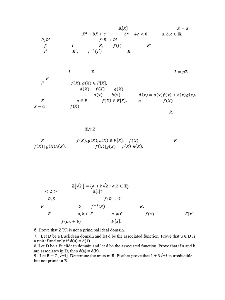 2. Prove that a ring ℤ[√2 ] = {𝑎 + 𝑏√2 ∶ 𝑎, 𝑏 ∈ ℤ} is an integral domain but not a field.