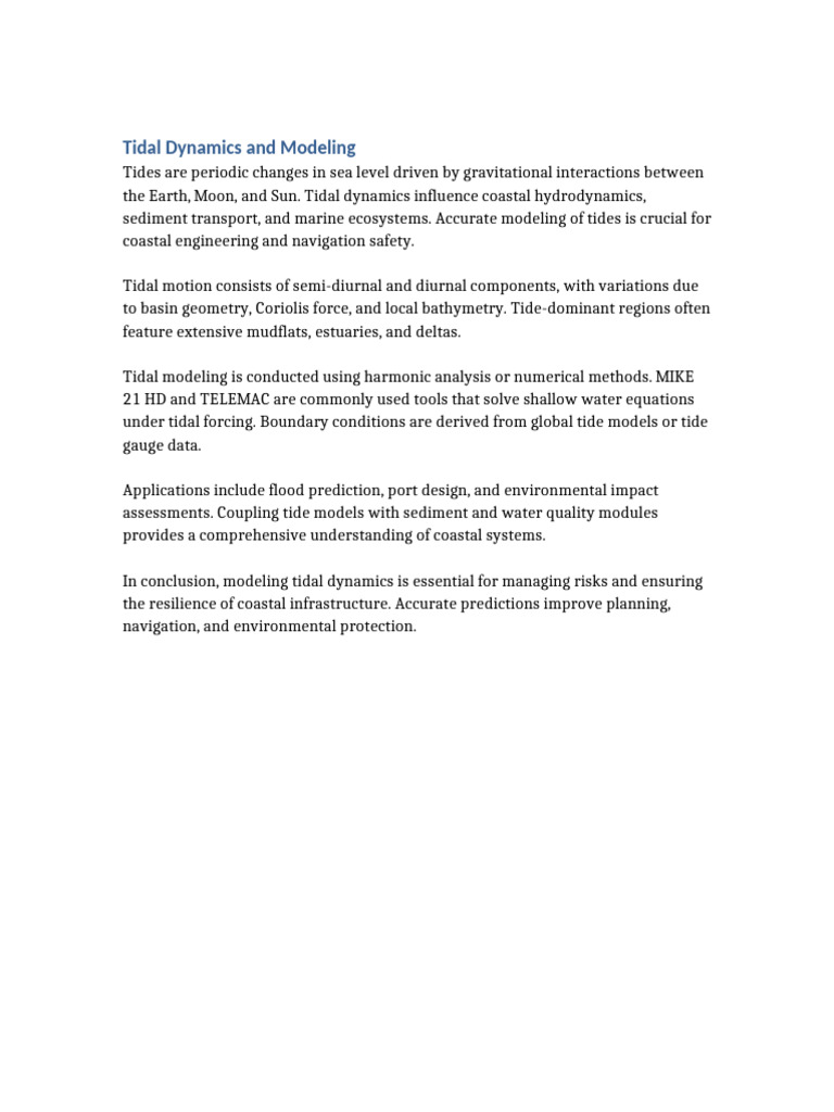 sediment transport, and marine ecosystems. Accurate modeling of tides is crucial for