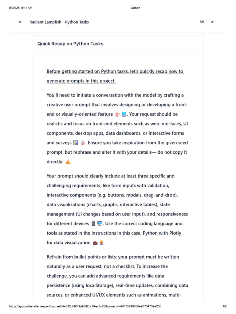 https://app.outlier.ai/en/expert/course?id=682cb85f9d90d2bc04ec3c70&projectId=67f13790650e90734759e236 1/2