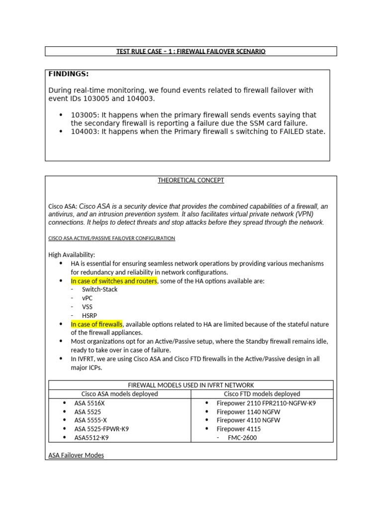 TEST RULE CASE – 1 : FIREWALL FAILOVER SCENARIO