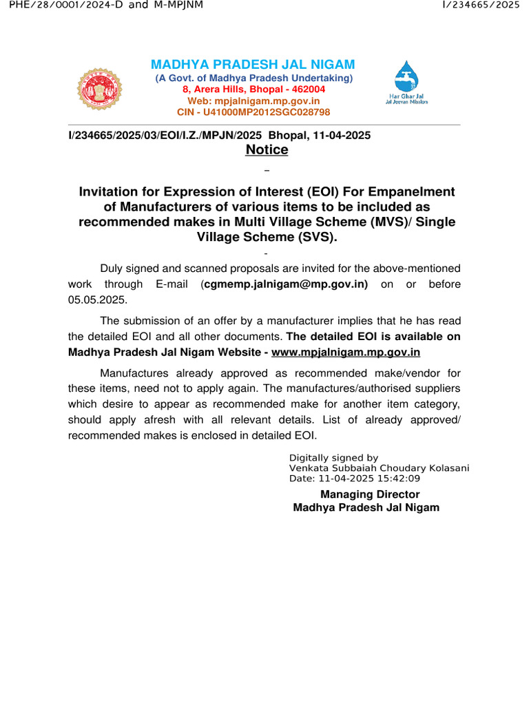 I/234665/202503/EOI/I.Z./MPJN/2025 Bhopal, 11-04-2025