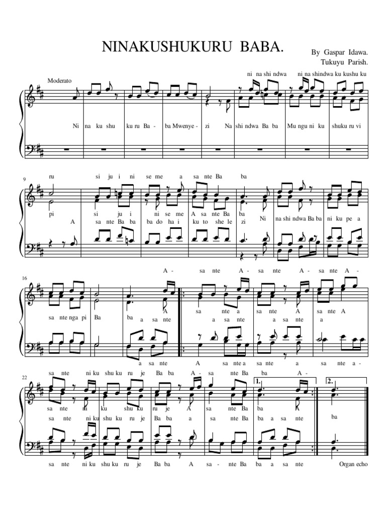 Ni na ku shu ku ru Ba - ba Mwenye - zi Na shi ndwa Ba ba Mu ngu ni ku shuku ru vi