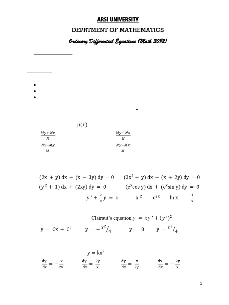 Ordinary Differential Equations (Math 3082)